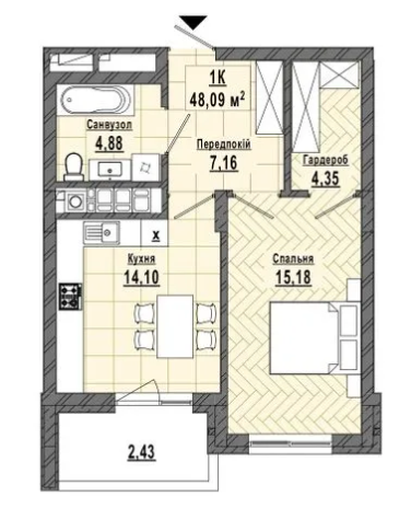 48 - 55 м.кв.