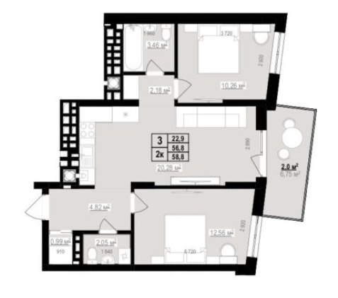 трикімнатні: