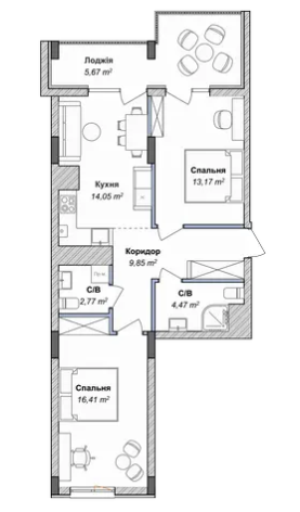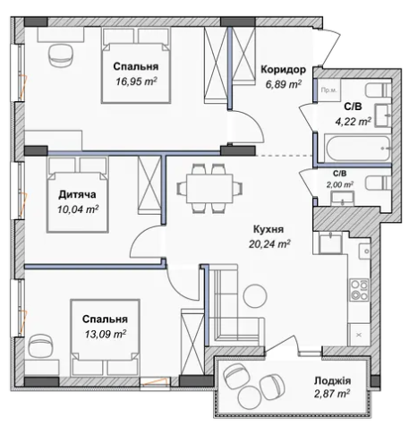 трикімнатні: