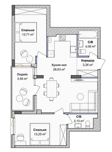 55 - 72 м.кв.