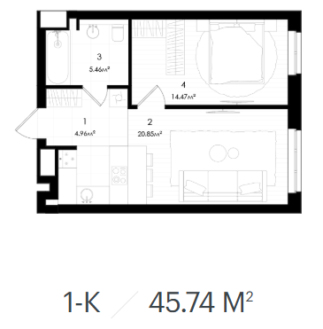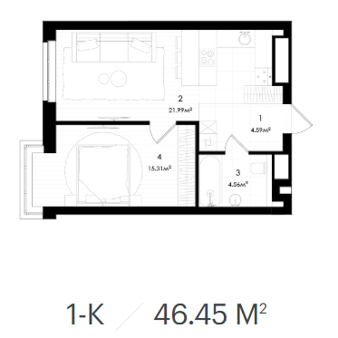 45 - 55 м.кв.